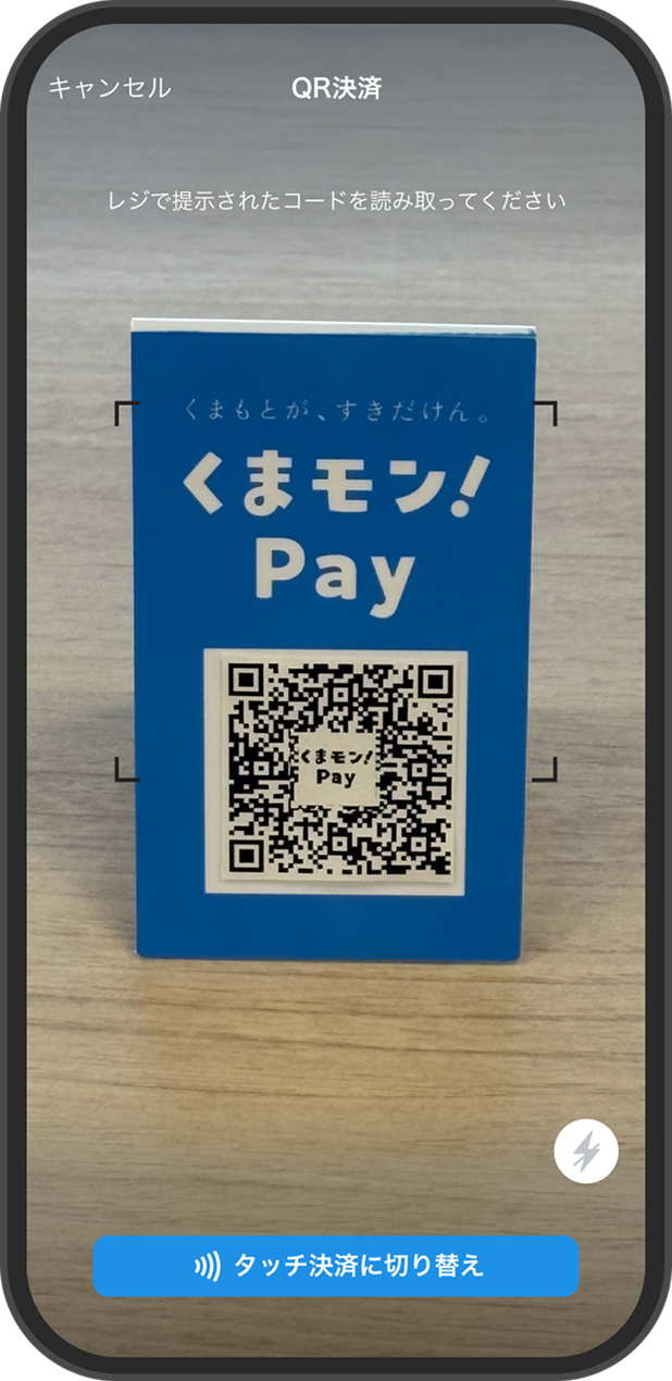 くまモン!Pay QR決済加盟店でQRコードを読み取る